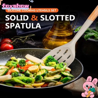 Bộ 2 Dụng Cụ Nấu Ăn Bằng Silicone Cán Gỗ Chất Lượng Cao