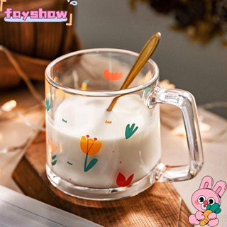 FAY Cốc Uống Nước Trong Suốt 350ml Có Tay Cầm In Họa Tiết Hoa Xinh Xắn