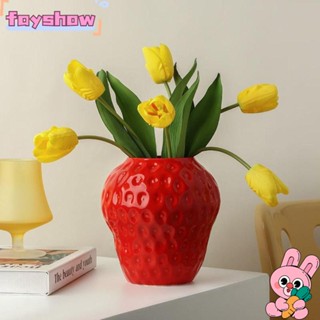Bình Hoa Bằng Gốm Sứ Họa Tiết Dâu Tây Xinh Xắn