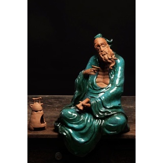 Tượng thần trà Lục Vũ gốm tử sa cao Cấp- Tượng gốm trang trí không gian trà, phối lũa tiểu cảnh