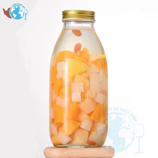 Chai thủy tinh nắp thiếc vặn 350ml, chai tròn cao 350ml, chai đựng nước ép, trà sữa, mật ong