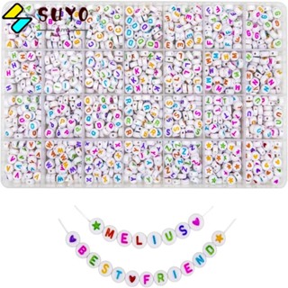 SUYO Chuỗi Hạt acrylic Tròn 4x7mm In Chữ Cái Nhiều Màu Sắc Dùng Làm Vòng Đeo Tay