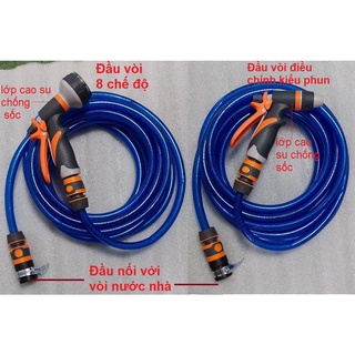 Bộ Vòi xịt rửa xe tăng áp lực, vòi tưới cây gia đình 8 chế độ phun, lắp cho vòi nước nhà tiện dụng