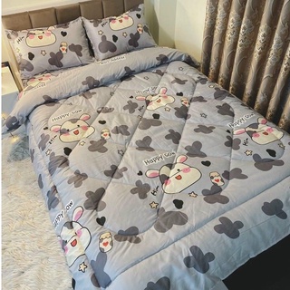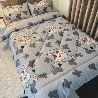 Bộ chăn phao trần bông ga gối 5 món poly cotton mền dày êm
