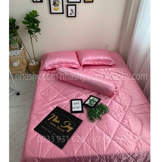 TRỌN BỘ DRAP GIƯỜNG PHI LỤA BÓNG CAO CẤP - MÀU HỒNG SEN - MÃ 01