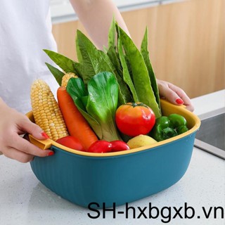 Rổ Rửa Rau Củ Quả Bằng PP Hai Lớp Sức Chứa Lớn Dễ Lau Chùi Đa Năng