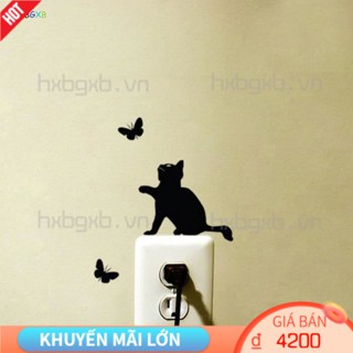 Miếng Dán Tường Trang Trí Hình Mèo Và Bướm Xinh Xắn