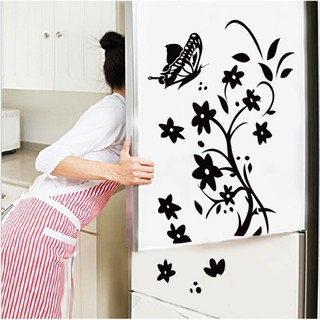 Decal dán tường - Hoa Lá Đen hoa văn