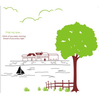 Decal trang trí cây xanh lớn và dòng sông mẫu mới