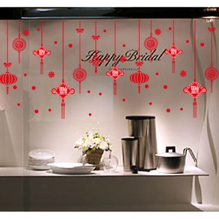 Decal Trang Trí Tết Hai Mặt Hít Tĩnh Điện Không Dơ Kính- Rèm dây lồng đèn bảng chữ đỏ