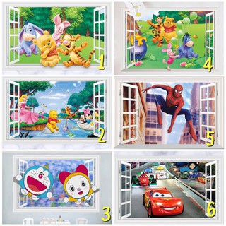 Decal trang trí tường khung cửa sổ 3D nhiều phim hoạt hình cho Bé