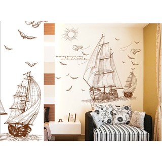 Decal trang trí tường Tranh Vẽ Thuyền lớn - Bé ra khơi