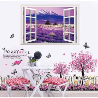 Decal trang trí khung cửa sổ 3D vườn hoa lớn xinh đẹp
