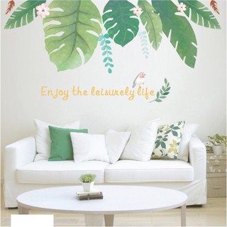 Decal dán tường trang trí - BỤI CHUỐI NỞ HOA KÈM CHỮ TIẾNG ANH