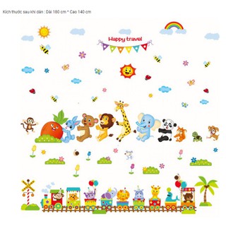 BỘ COMBO DECAL GHÉP ĐÔI TRANG TRÍ - Voi Nhỏ kết hợp Xe Lửa mới ( 2 TẤM )