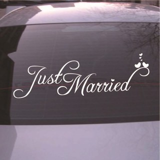 Decal trang trí tường / Xe - Chữ Just Married ( Trắng )