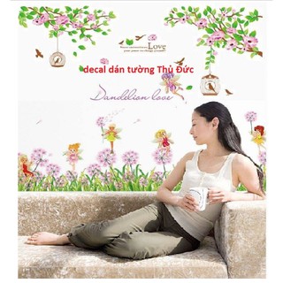 BỘ COMBO DECAL GHÉP ĐÔI TRANG TRÍ - Nhành lá hoa và chân bồ công anh thiên thần ( 2 TẤM )