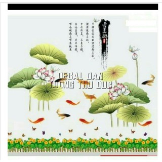 BỘ COMBO DECAL GHÉP ĐÔI TRANG TRÍ - Sen chữ Tàu kết hợp chân hoa Vàng ( 3 TẤM )