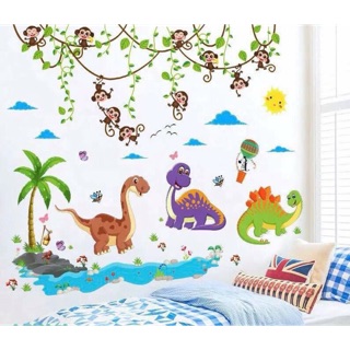 BỘ COMBO DECAL GHÉP ĐÔI dán tường - Khủng Long và Dây leo Khỉ ( 2 TẤM )
