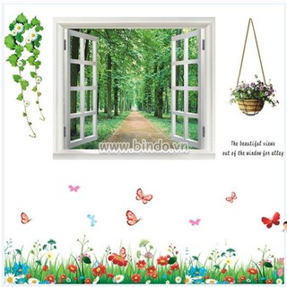 BỘ DECAL COMBO GHÉP ĐÔI DÁN TƯỜNG - CỬA SỔ CON ĐƯỜNG VÀ HÀNG RÀO TỈ MUỘI ( 2 tấm )