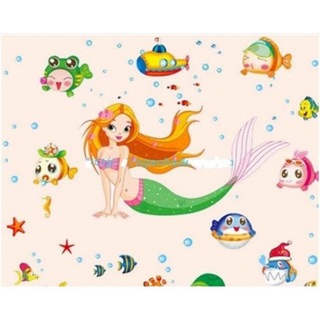 BỘ COMBO DECAL GHÉP ĐÔI dán tường - Nàng Tiên Cá và Nhiều cá nhỏ( 2 TẤM )