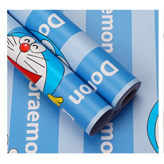 1 mét Decal giấy dán tường đô rê mon nền xanh sọc khổ 45cm keo sẵn