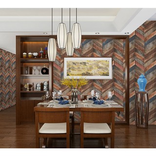 Decal giấy dán tường giả gỗ đan chéo khổ 45cm keo sẵn