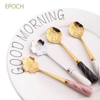Muỗng thép không gỉ hình hoa tay cầm gốm dùng uống trà/cà phê cho nhà bếp
