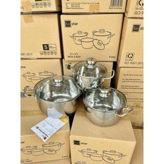 BỘ COOL 3 NỒI FIVESTAR 3 ĐÁY NẮP KÍNH size 16cm, 20cm, 24cm