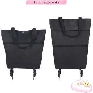 LANFY Túi Mua Sắm Màu Đen Có Bánh Xe Kéo Chống Thấm Nước Tiện Lợi