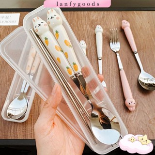 LANFY Bộ Dụng Cụ Bàn Ăn 3 Trong 1 Bằng Thép Không Gỉ Kèm Hộp Đựng Tiện Lợi