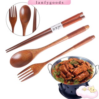 LANFY Bộ Muỗng Đũa Nĩa Du Lịch Tự Nhiên