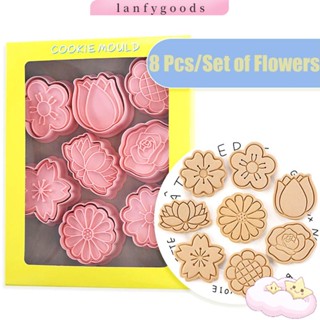 LANFY Bộ 8 Khuôn Làm Bánh Quy Hình Hoạt Hình 3D Bằng Nhựa