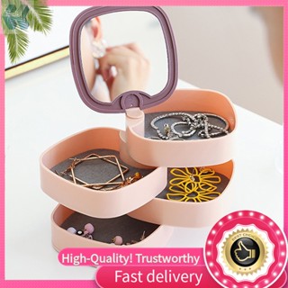 Hộp Đựng Trang Sức Để Bàn Có Gương Xoay 360 Độ Mini