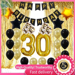 Bong Bóng Lá Nhôm Chúc Mừng Sinh Nhật Nam Nữ Màu Vàng Đen Tự Bơm Phồng: Bong Bóng Bay helium Hoặc Không Khí Cao Trang Trí Tiệc Kỷ Niệm