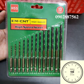bộ 13 mũi khoan inox thép HSS chuôi lục giác bắn vít 6.35mm EM CNT (1.5 - 6.5mm)