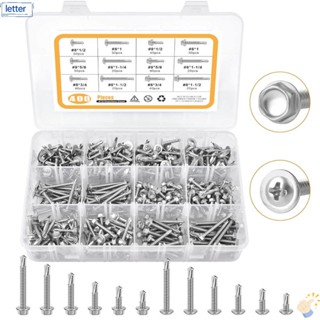 Set 400 Ốc Vít Đầu Lục Giác / Chữ Thập / Đầu Tròn / Chữ Thập / Đầu Lục Giác 12 Kích Cỡ Khác Nhau #8 Ốc Vít Tự Dính Chuyên Dụng Cho Xây Dựng Kim Loại