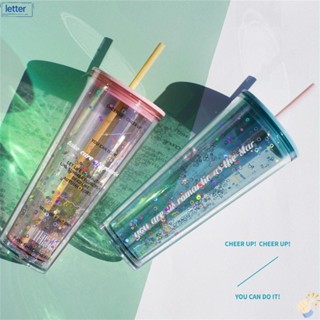 Bình Nước Kim Tuyến 800ml Hai Lớp Kèm Ống Hút Tiện Dụng