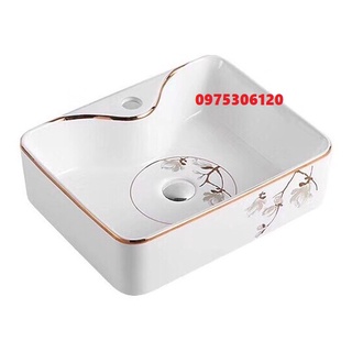 Chậu rửa mặt lavabo Đặt Bàn Đá 8816HV-HOA VÀNG thương hiệu NA.GRAND, men NANO trắng sáng chống ố chống bám bẩn