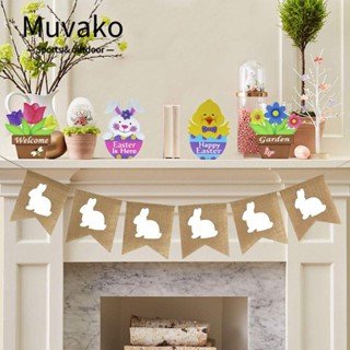 MUVAKO Bảng Trang Trí Bàn Ăn In Chữ Happy Easter / Hoa / Thỏ Phục Sinh Độc Đáo Xinh Xắn