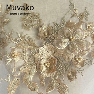 MUVAKO Vải Ren Thêu Hoa 3D Dùng Làm Vòng Cổ DIY|Miếng Vá Trang Trí Váy Đính Hạt Cườm Xinh Xắn