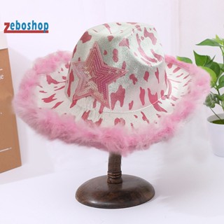[ZEBO] Mũ Cao Bồi Có Dây Rút Viền Lông Vũ Họa Tiết Ngôi Sao Hóa Trang Cho Nữ