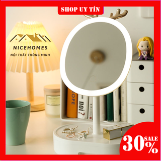Gương để bàn phong cách bắc âu, gương để bàn trang điểm có đèn led cảm ứng thông minh NPR21
