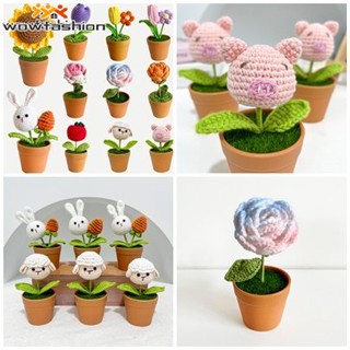 Chậu Hoa Hồng Đan Tay Hình Hoa Tulip Dễ Thương Dùng Trang Trí Nhà Cửa