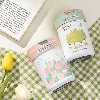 Bình Nước Giữ Nhiệt Chống Trượt Bằng Thép Không Gỉ Họa Tiết Hoa Xinh Xắn
