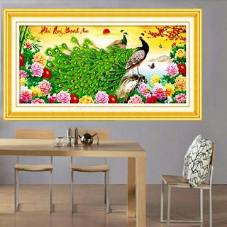 Tranh đính đá chim công gia hòa vạn sự hưng KT:110x50cm. Tranh gắn đá chưa gắn.