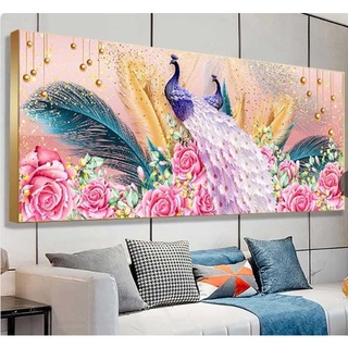 tranh thêu chữ thập chim công phú quý e199 (100x50) cm