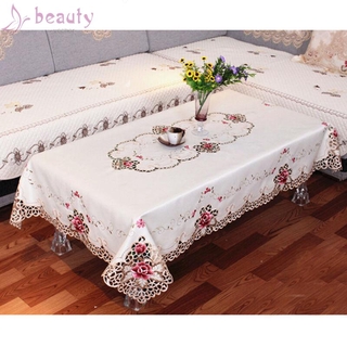 Khăn Trải Bàn Hình Chữ Nhật Phối Ren Dễ Giặt Để Trang Trí