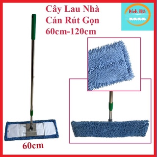 Chổi lau khô, lau ẩm 60cm, 45cm vải san hô xanh cán inox dài 130cm,xoay 360 ,loại rút gọn thông minh