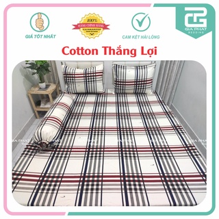 Bộ ga gối Cotton Thắng Lợi 100% {4 món} Drap Thắng Lợi chuẩn logo ( 1 ga bọc + 2 vỏ gối nằm + 1 vỏ gối ôm )